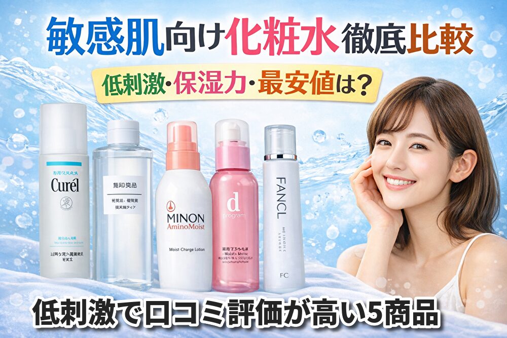 刺激が強いものを使うと赤みやヒリつきが出やすく、せっかくのケアが逆効果になることもあります。この記事では、低刺激設計で口コミ評価が高い人気の敏感肌向け化粧水5商品をピックアップ